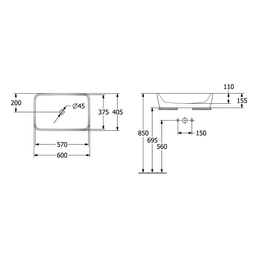 | Otvor za slavinu | Bez otvora za slavinu |