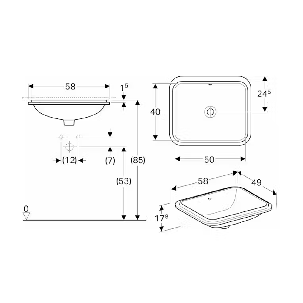 Geberit VariForm podgradni lavabo 58×49 cm, bez preliva 500.766.01.2