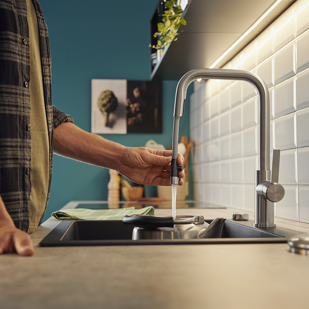 • Visoki izliv sa izvlačećim tušem za lako punjenje lonaca i vaza