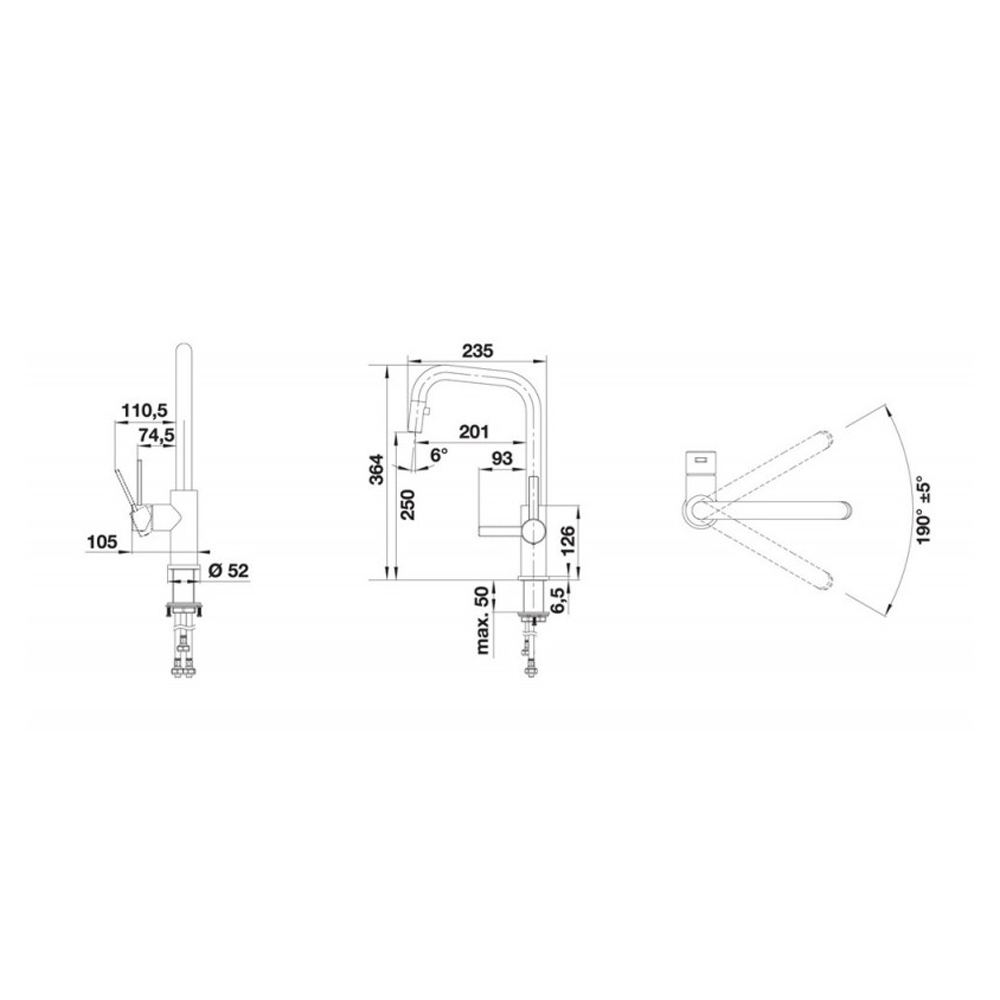 • Potreban otvor za slavinu Ø 35 mm