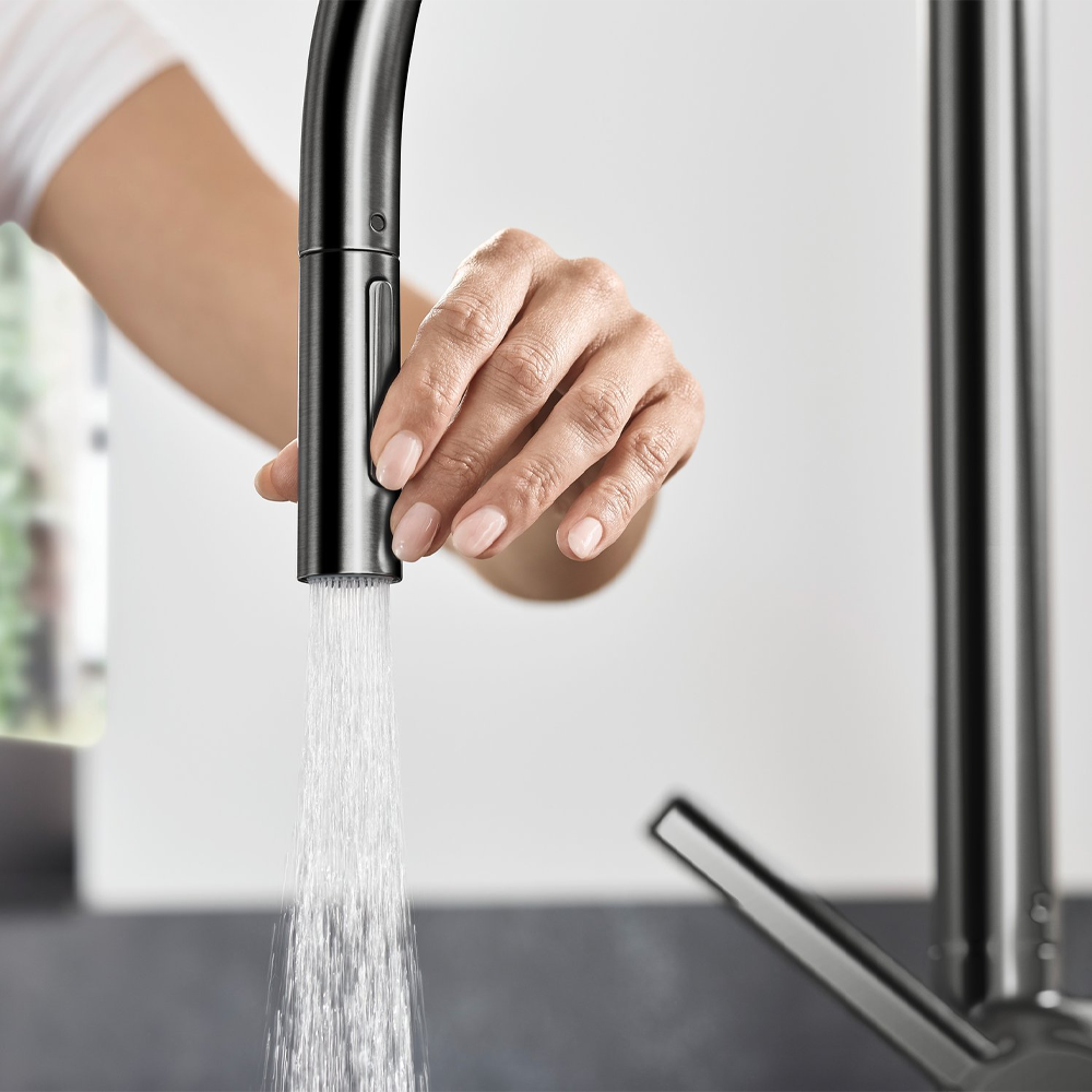 • sprej za tuširanje koji se može zaključati, sprej se vraća pritiskom na preusmerivač spreja i automatski se vraća kroz zatvaranje ručke