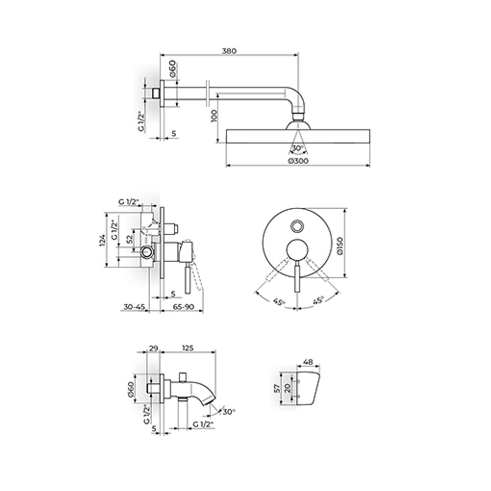 Rosan Gee.O uzidna baterija za tuš kadu sa izlivom, uzidnim i ručnim tušem JG31701