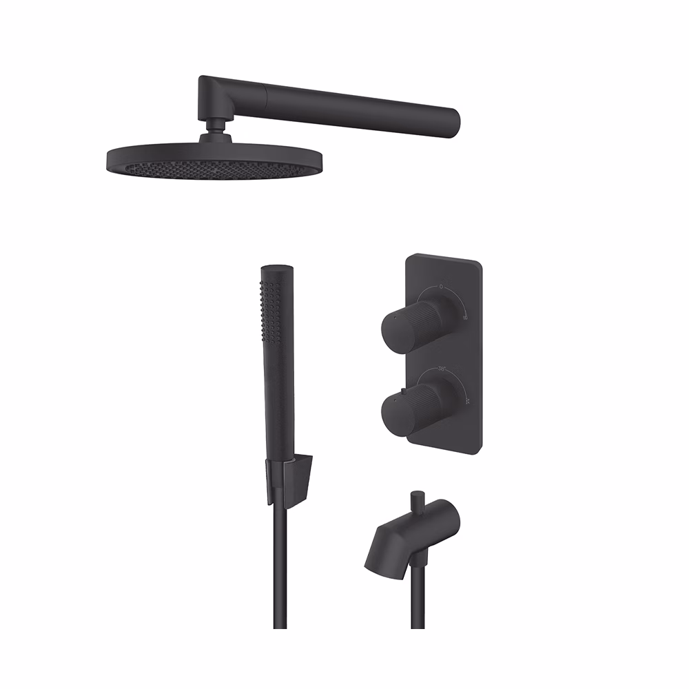 Rosan Stolz S4 Black termostatska uzidna baterija sa izlivom, tuš ružom i ručnim tušem