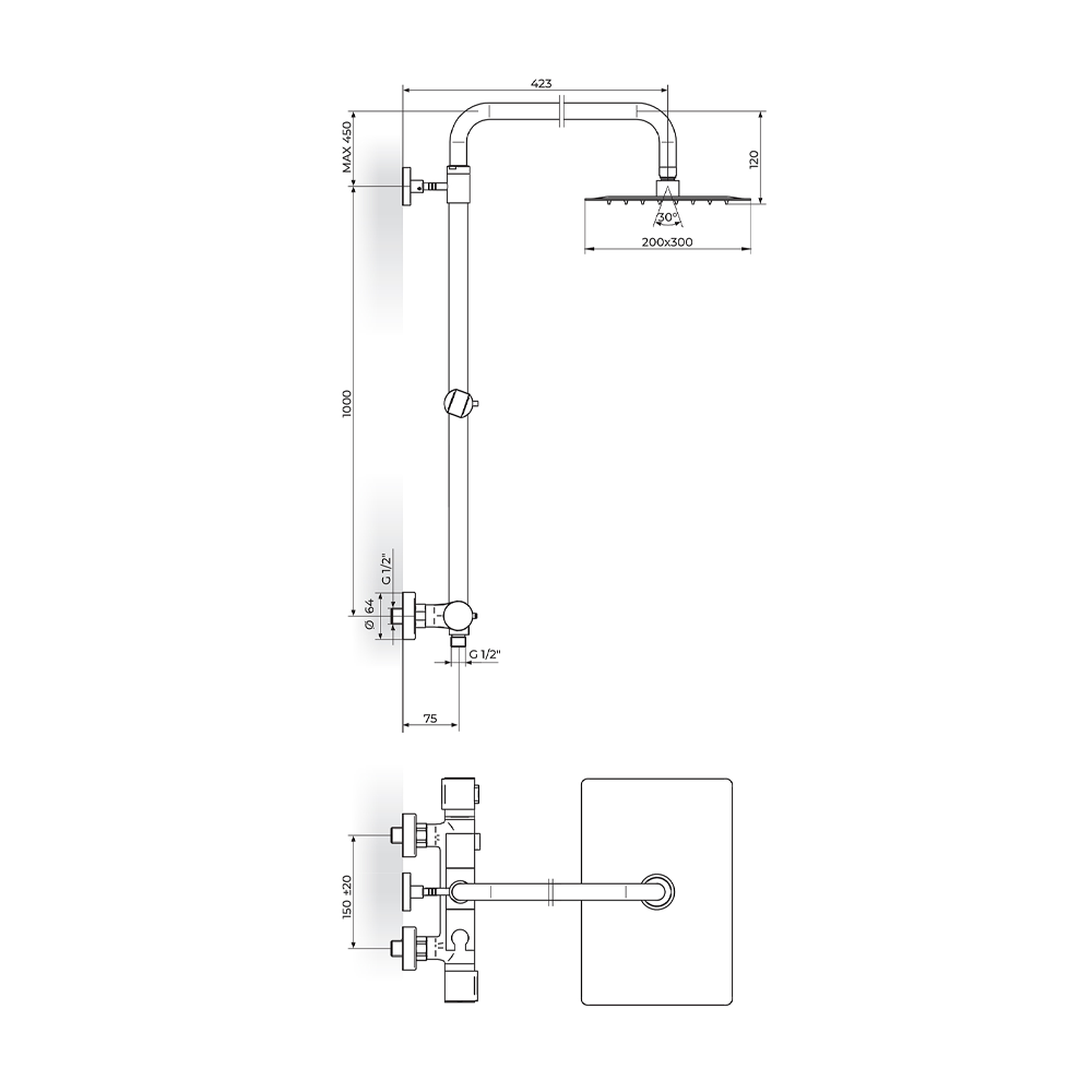 • Tuš ruža 200*300mm – PTRUSP16D