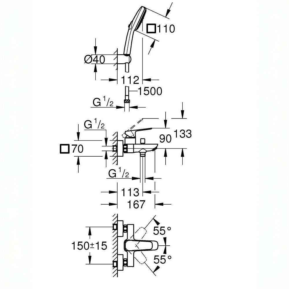 | Način ugradnje slavine | Zidna |