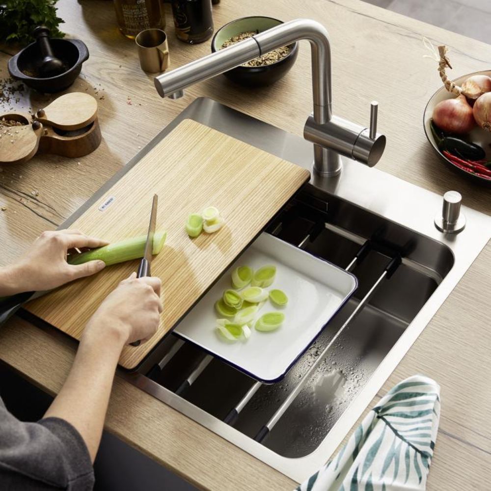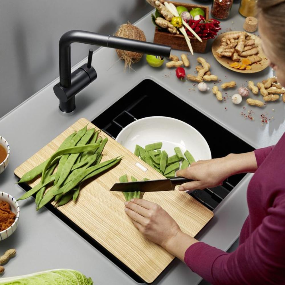 Napomena: Kada se koristi u kombinaciji sa SILGRANIT® kuhinjskom sudoperom, može se desiti da daska ne odgovara zbog dimenzija izreza na radnoj površini (prelazak preko ivice sudopere) – daska se uvek može koristiti pored sudopere