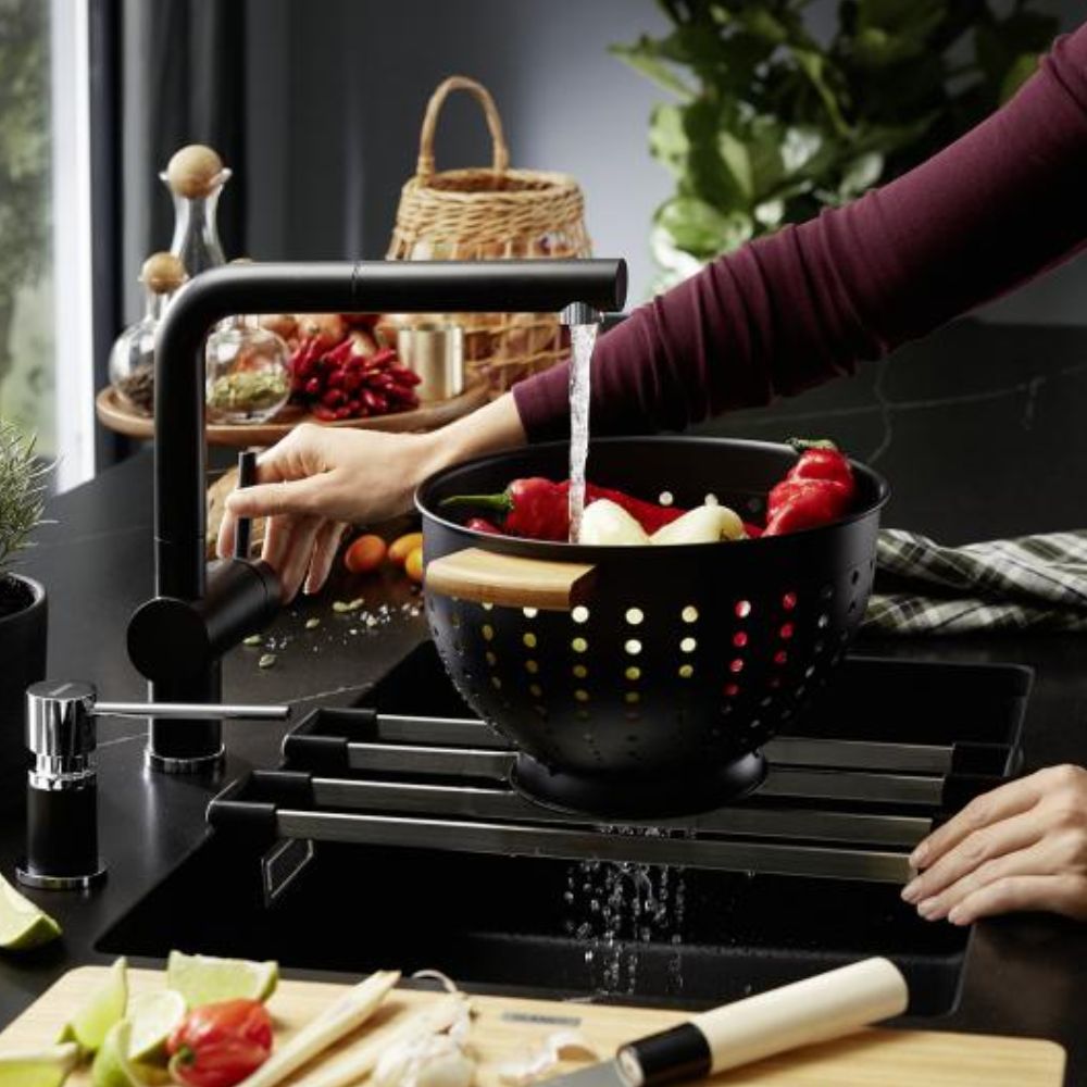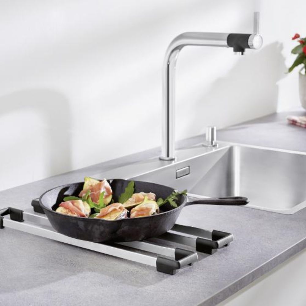 BLANCO dodatni pribor čini sudoperno mesto praktičnijim i boljim. BLANCO šine odličan su višenamenski dodatak koji će vas oduševiti. Na vrhu sudopere će biti savršen nosač šerpe, vaze, pleka. Odlično će poslužiti da pridrži cediljku ako nešto treba da iscedite a tu je i kao mesto za odlaganje krpica, sunđera i četki. Van sudopere je savršen podmetač za vruće tepsije, plekove i šerpe.