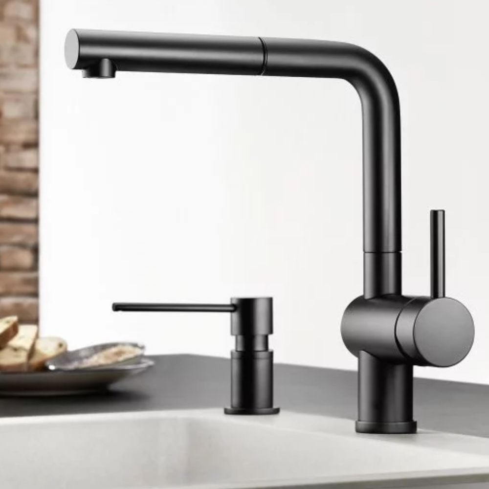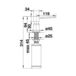 Univerzalni dozer za sapun, koji sa svojim cilindričnim dizajnom odgovara mnogim kuhinjskim slavinama.