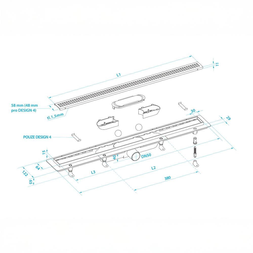 • odvod vode: 41 mm, DN40