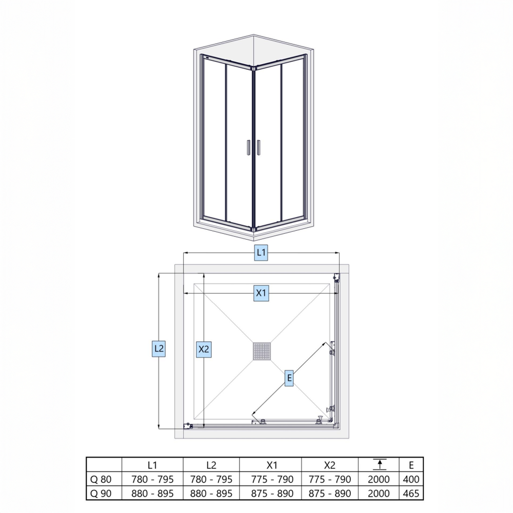 - 660270 – Kolpa San tuš kabina Venus 90x90x200 staklo 6mm providno, srebrni profil