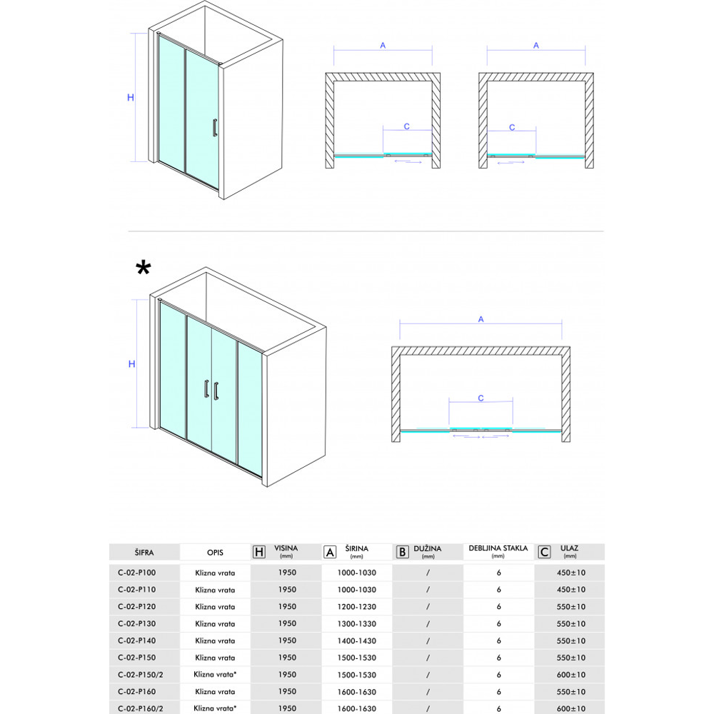 • Klizna vrata serije Opal u sedam različitih dimenzija.