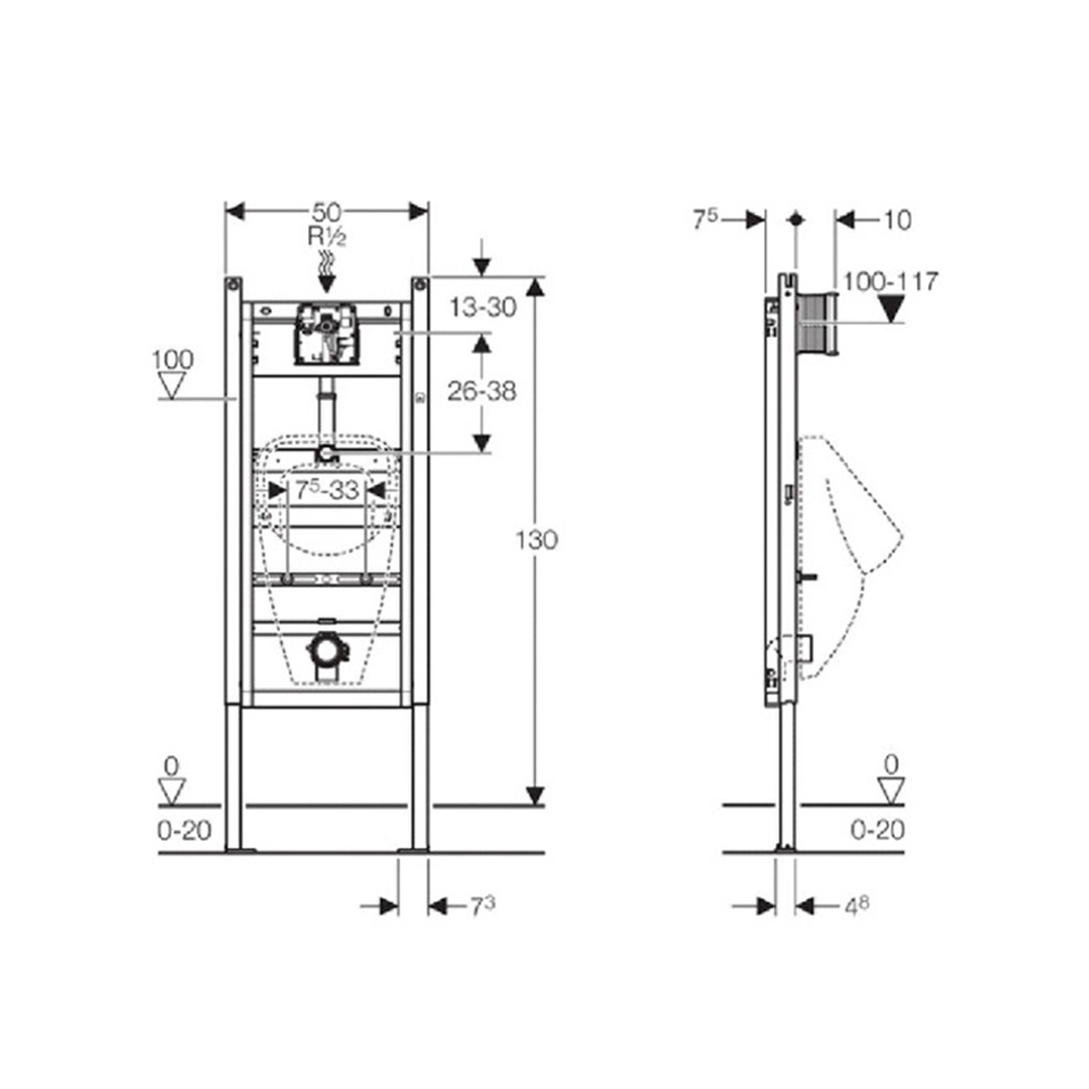 - Pričvršćenja za pisoar M8, podesiva po širini i visini
